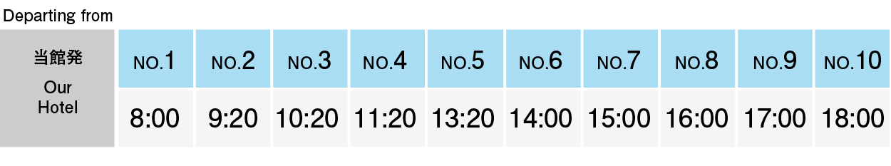 ※Our shuttle bus departs on schedule, so please make sure to arrive before the departure time to avoid missing your ride.
